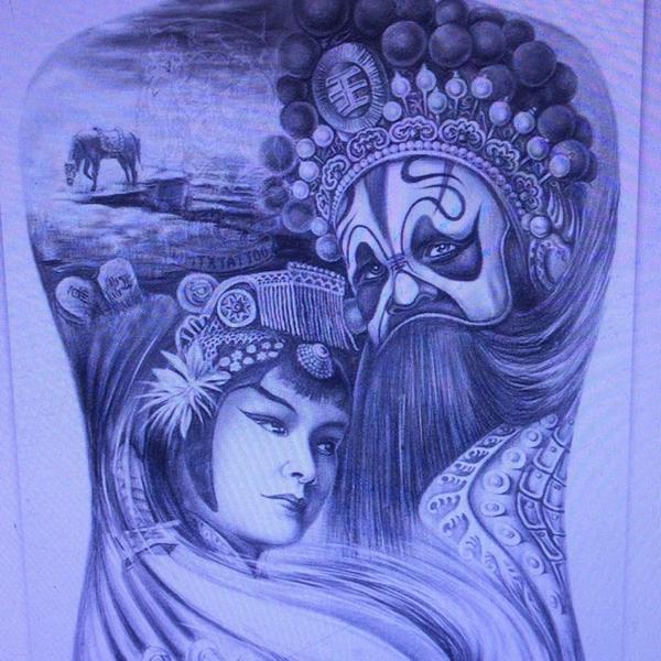 霸王别姬(未完成)_纹身图案手稿图片_观云的纹身作品集