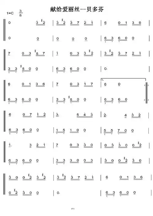 贝多芬致爱丽丝钢琴简谱c调简单版视频教学