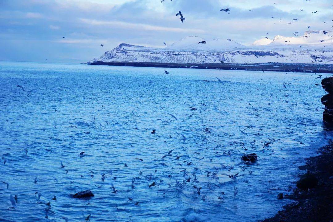 这一抹清新的蓝,让高山,云朵和天空生动了起来,好似一幅油画,远处的亮