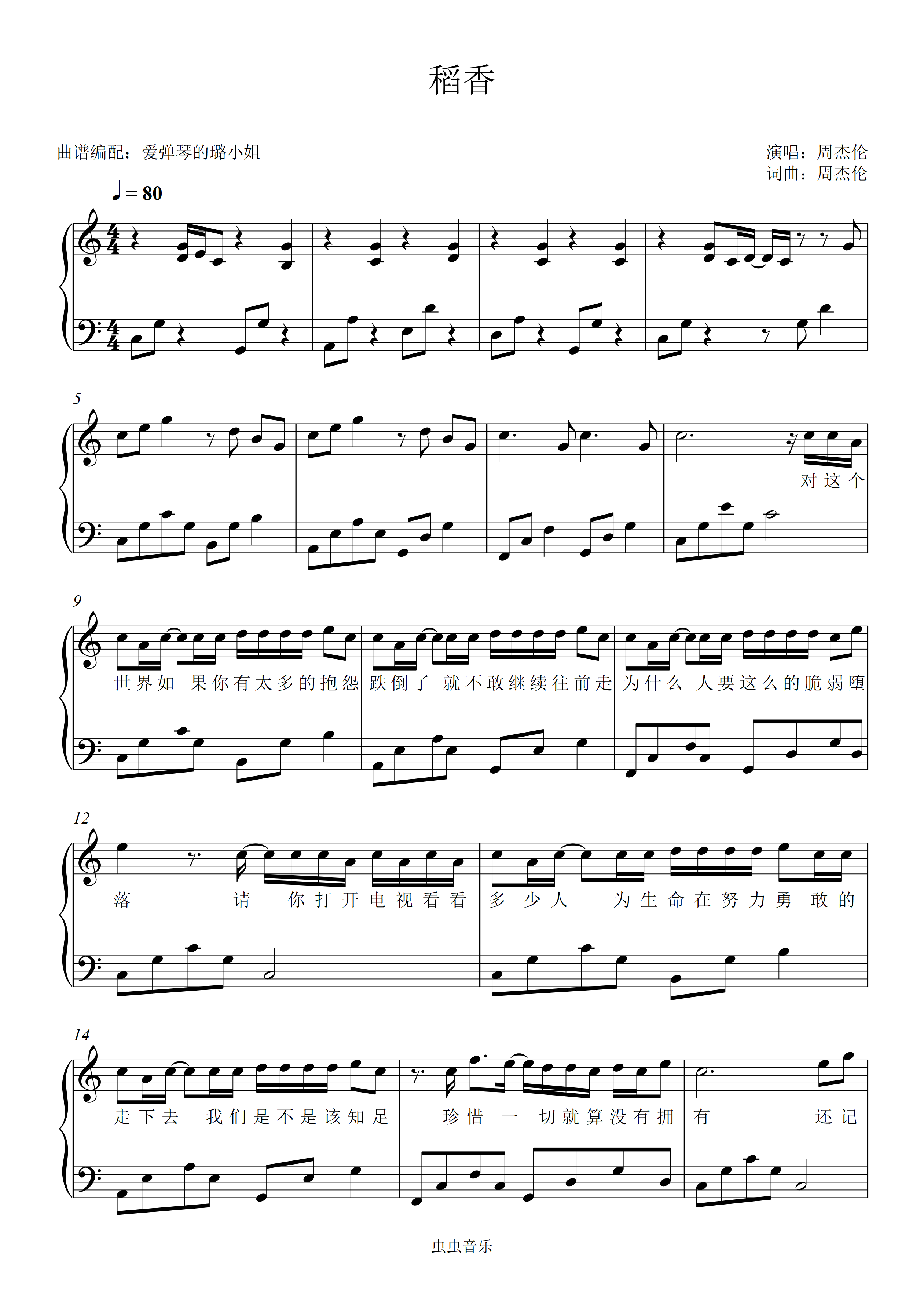 稻香钢琴谱-c调-虫虫钢琴