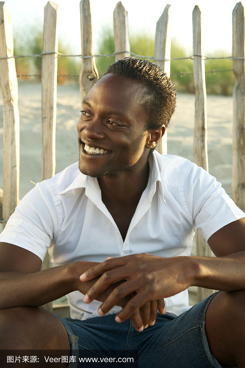 微笑的黑人在户外