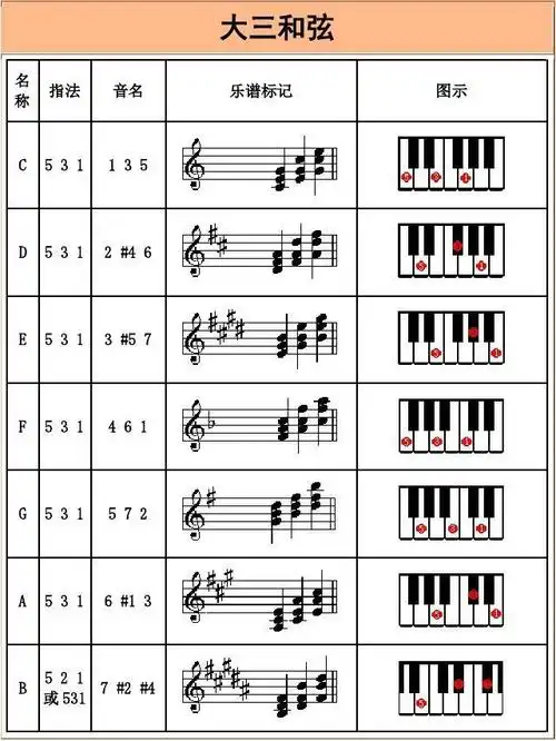 电子琴常用和弦列表