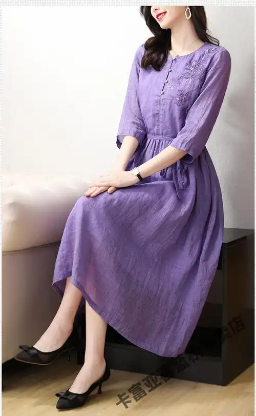kafuya素订女装官方夏款高品质杭州亚麻苎麻品牌棉麻连衣裙女夏季2022