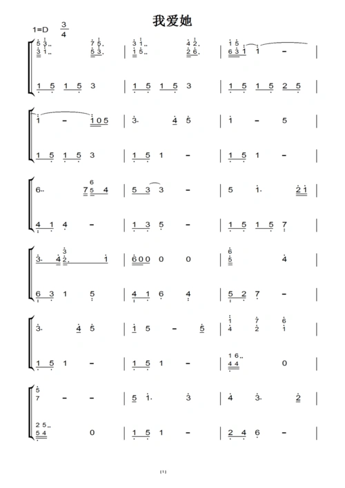 我爱她 原版 钢琴双手简谱 钢琴谱 钢琴简谱