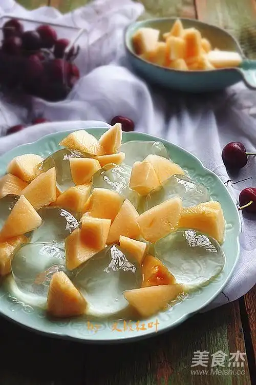 水果冰粉配料也是三种,菠萝哈密瓜和西瓜,吃起来有水果的酸甜味儿