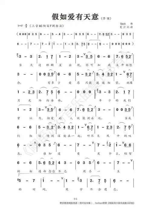 假如爱有天意简谱精确含注释记谱陶笛箫埙葫芦丝唢呐适用