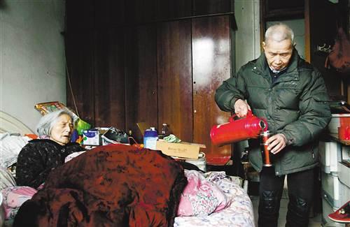 巷社区一栋居民楼里,王顺先婆婆胃病又犯了,李绍光老人为她倒热水暖胃