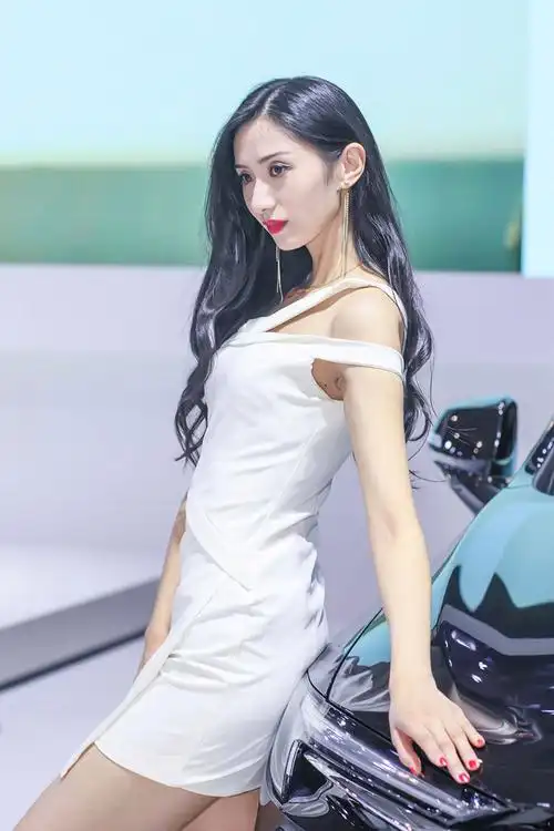 穿大红蝙蝠超短裙的别克车模