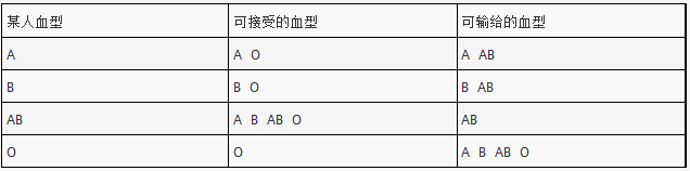 下表是某同学列出的输血关系.其中有错误的一行是a.① b.② c.③ d.