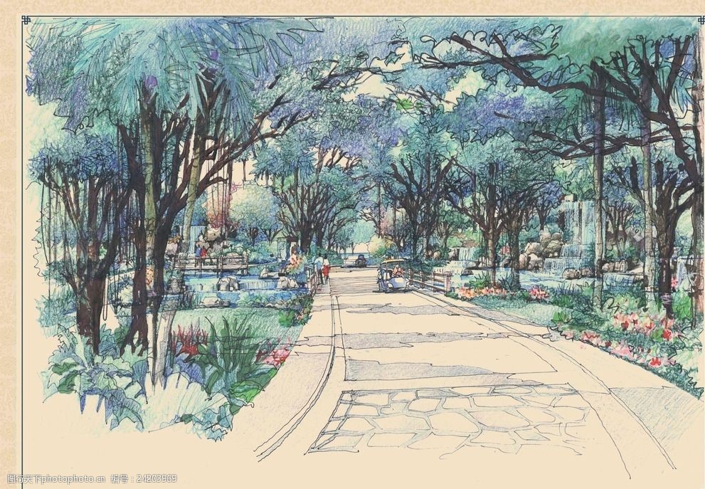 手绘示意图(3)退让绿化不适宜布置海绵设施的路段,在现状行道树之间