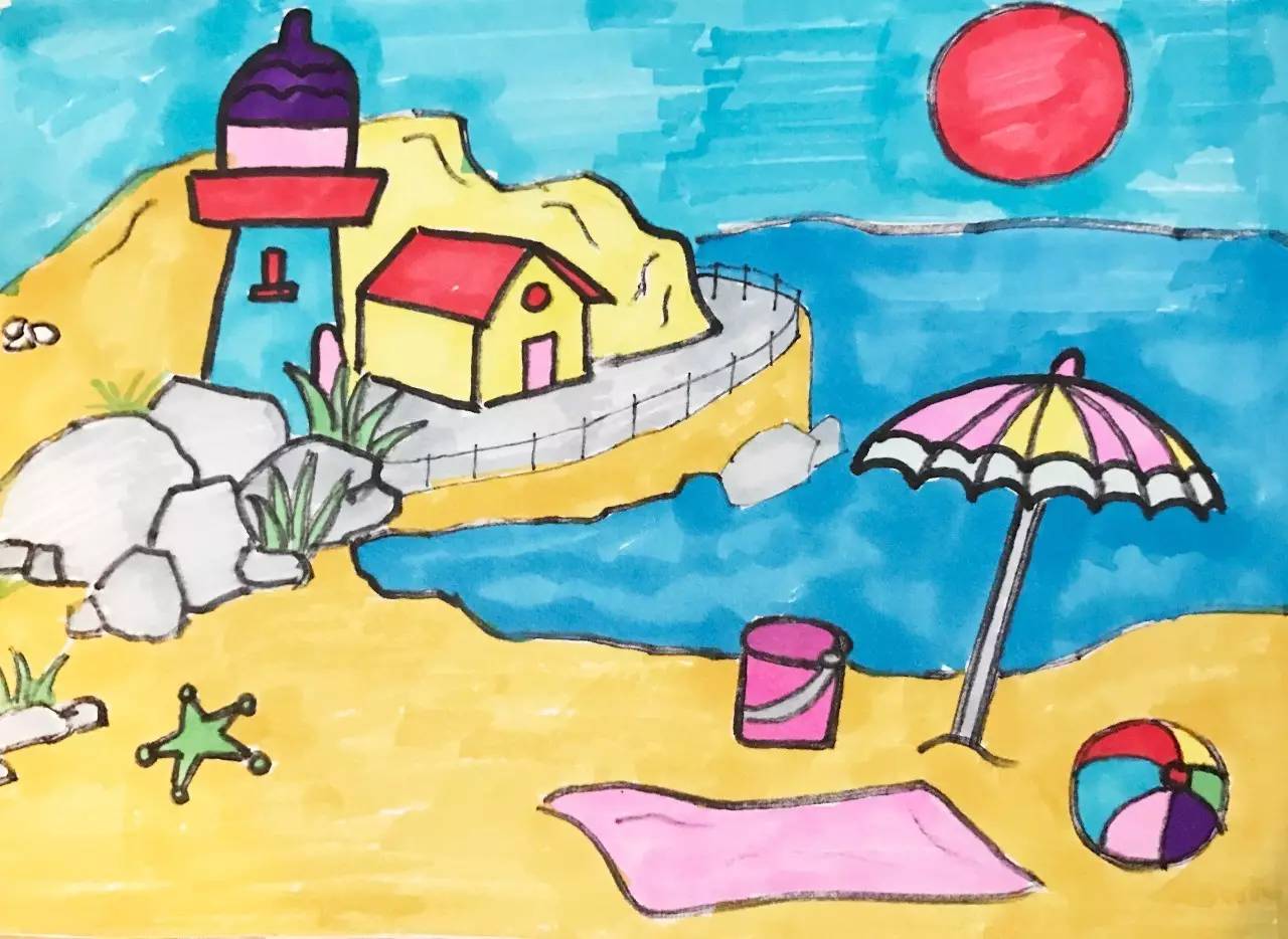 儿童画 | 夏日沙滩 99一组【夏日沙滩主题儿童画】分享给大家99