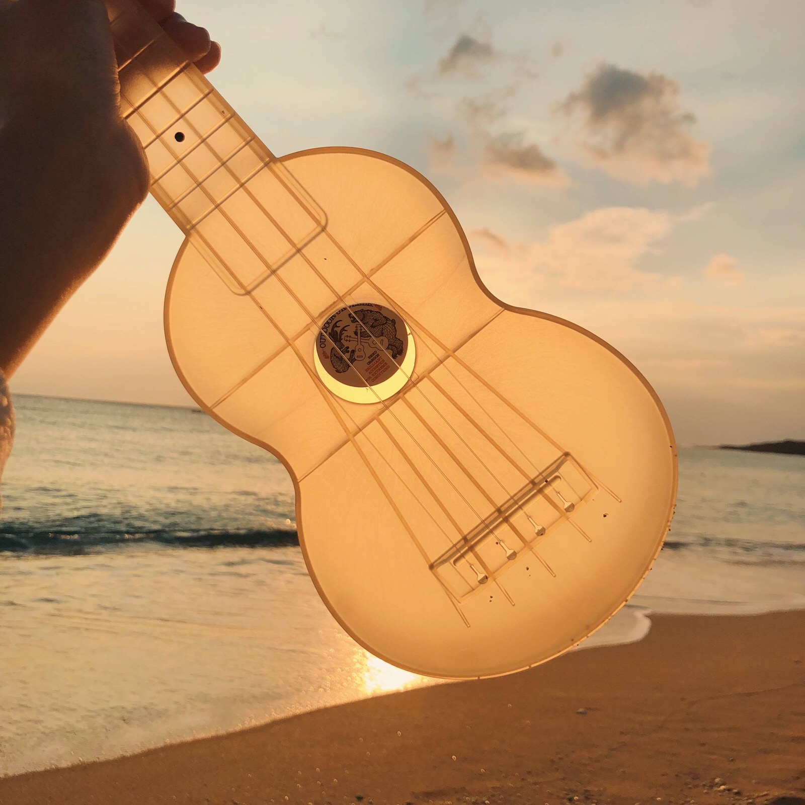 尤克里里 海边夕阳晚霞锁屏壁纸背景图