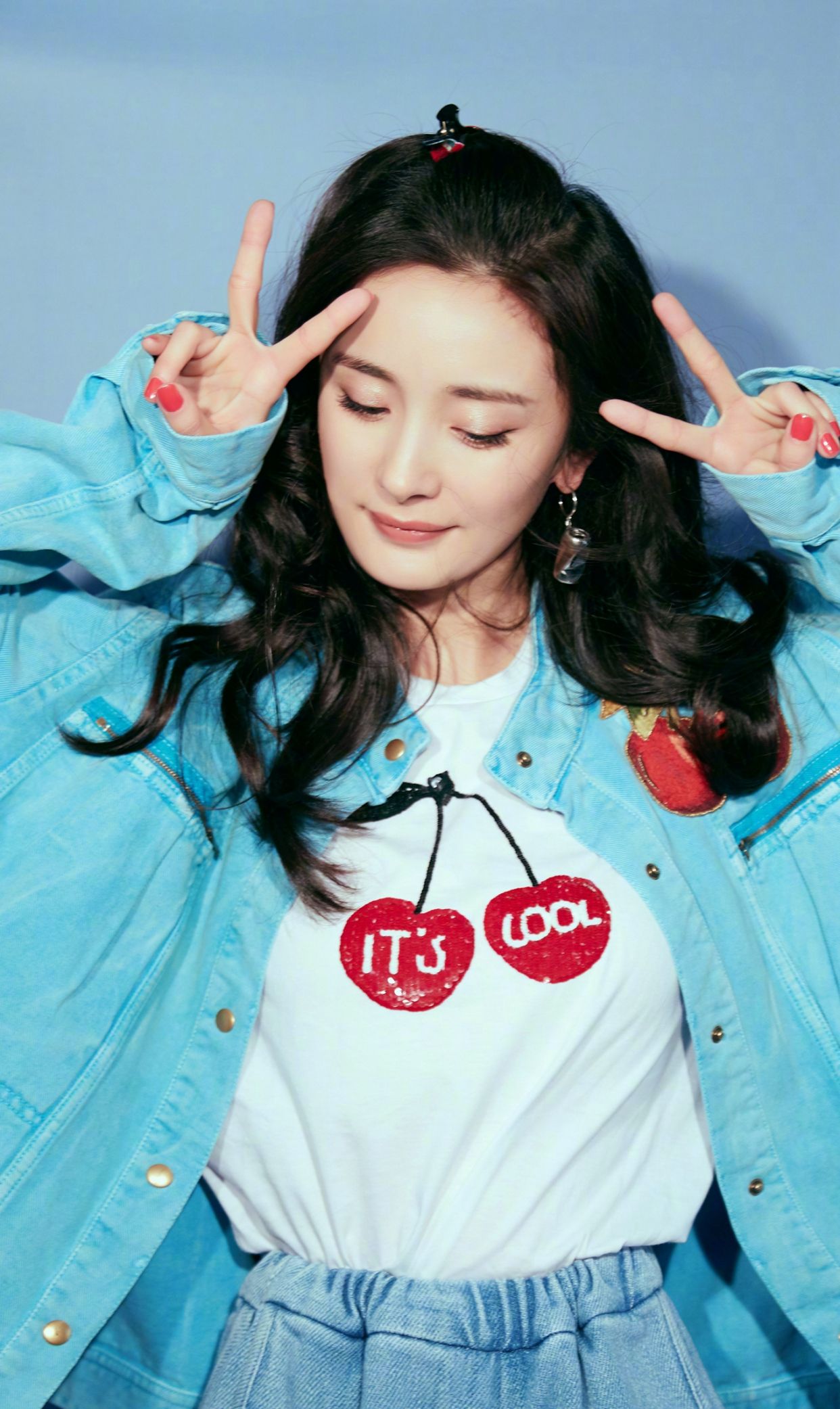 杨幂直播双马尾牛仔造型~ 可爱甜美的幂幂啊,满满少女感__财经头条