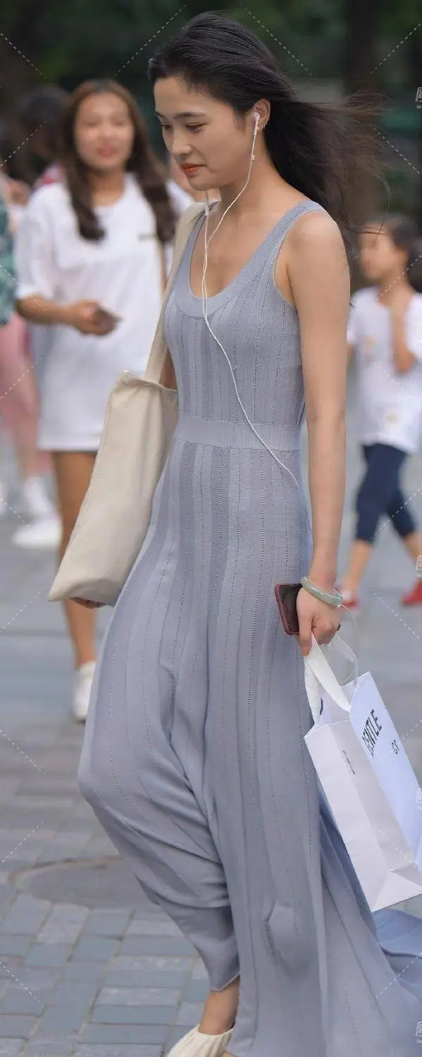 夏天穿连衣裙,时尚的美女搭配高跟鞋,挺拔舒展的感觉真好