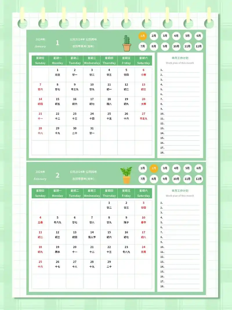 2024年全年日历计划表 - 抖音