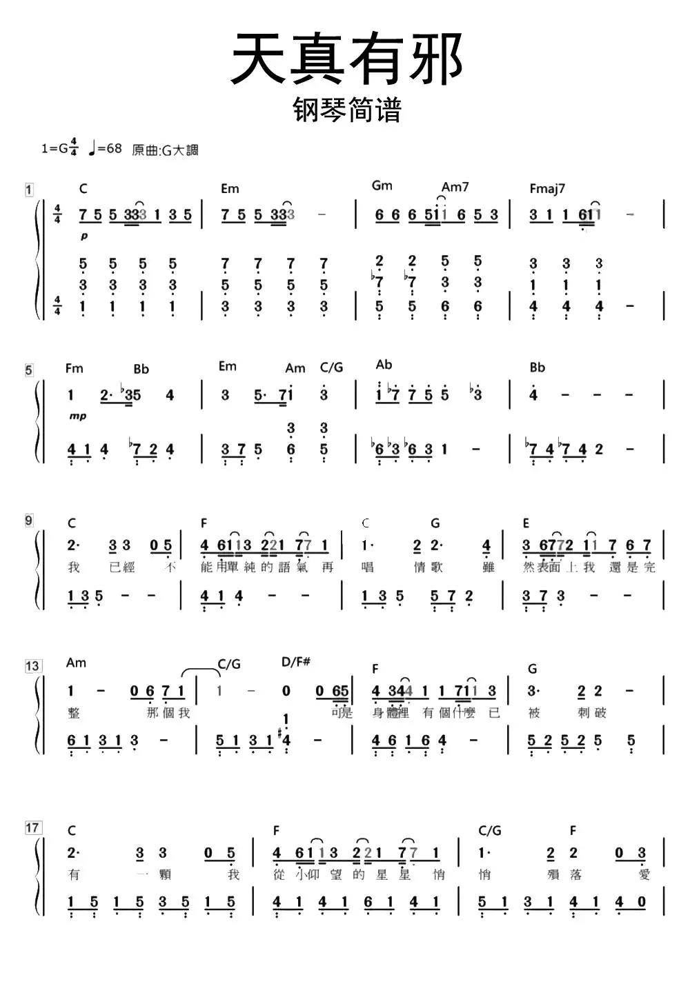 天真有邪钢琴吉他谱 - 虫虫吉他谱免费下载 - 虫虫吉他