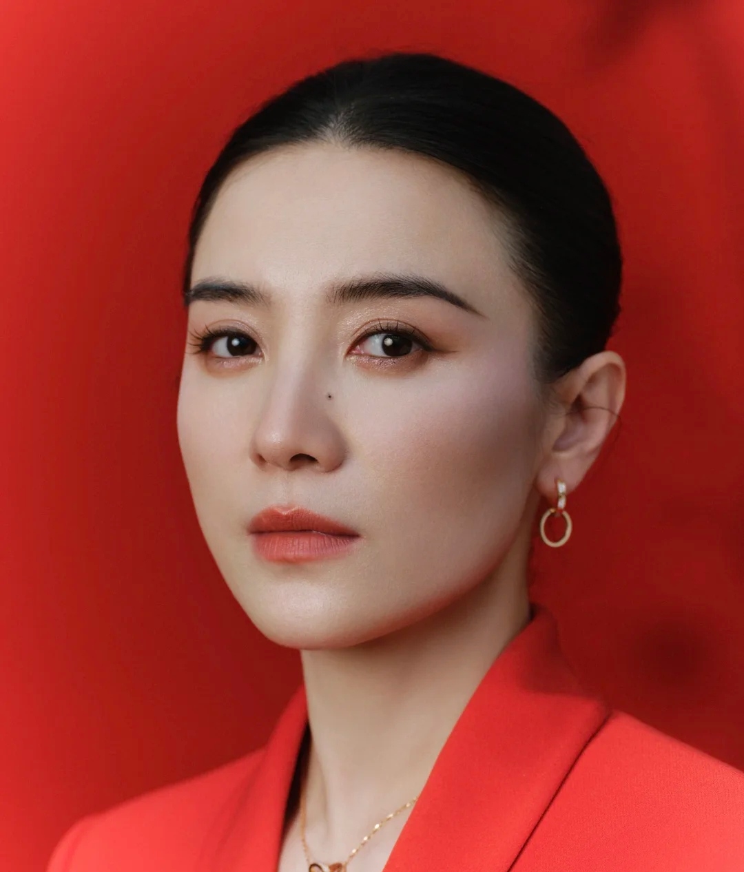 宋佳身穿一袭红裙,在红墙前笑颜如花,气场全开,美得让人心动
