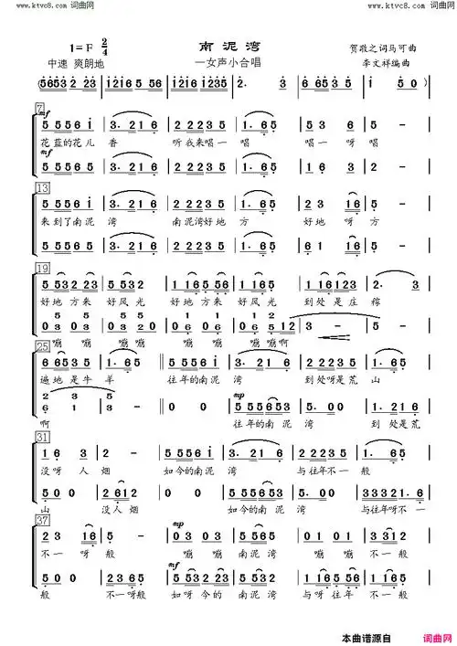 南泥湾女声小合唱简谱-李文祥演唱-贺敬之/马可词曲1