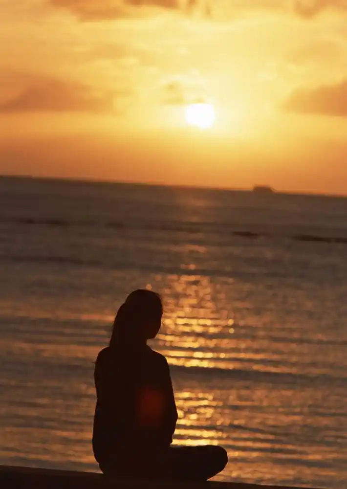 一个人坐在海边看海的图片