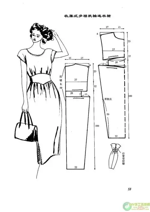分享一本老书上的裁剪要领歌中袖宽松连衣裙裁剪图