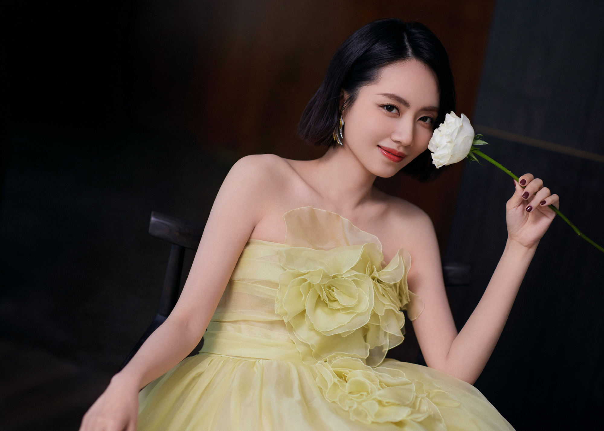 刘惜君甜美风格写真组图,一袭淡黄色花朵纱裙,笑意盈盈,优雅生姿