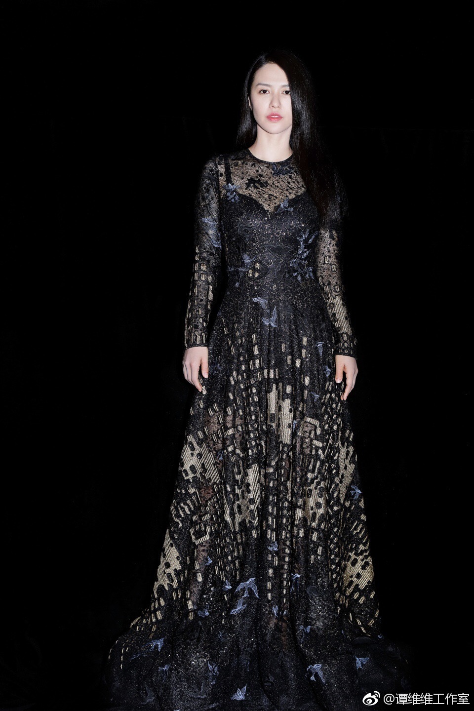 谭维维减肥后气质变化好大 ! 颁奖会穿露背渔网透视裙好诱人