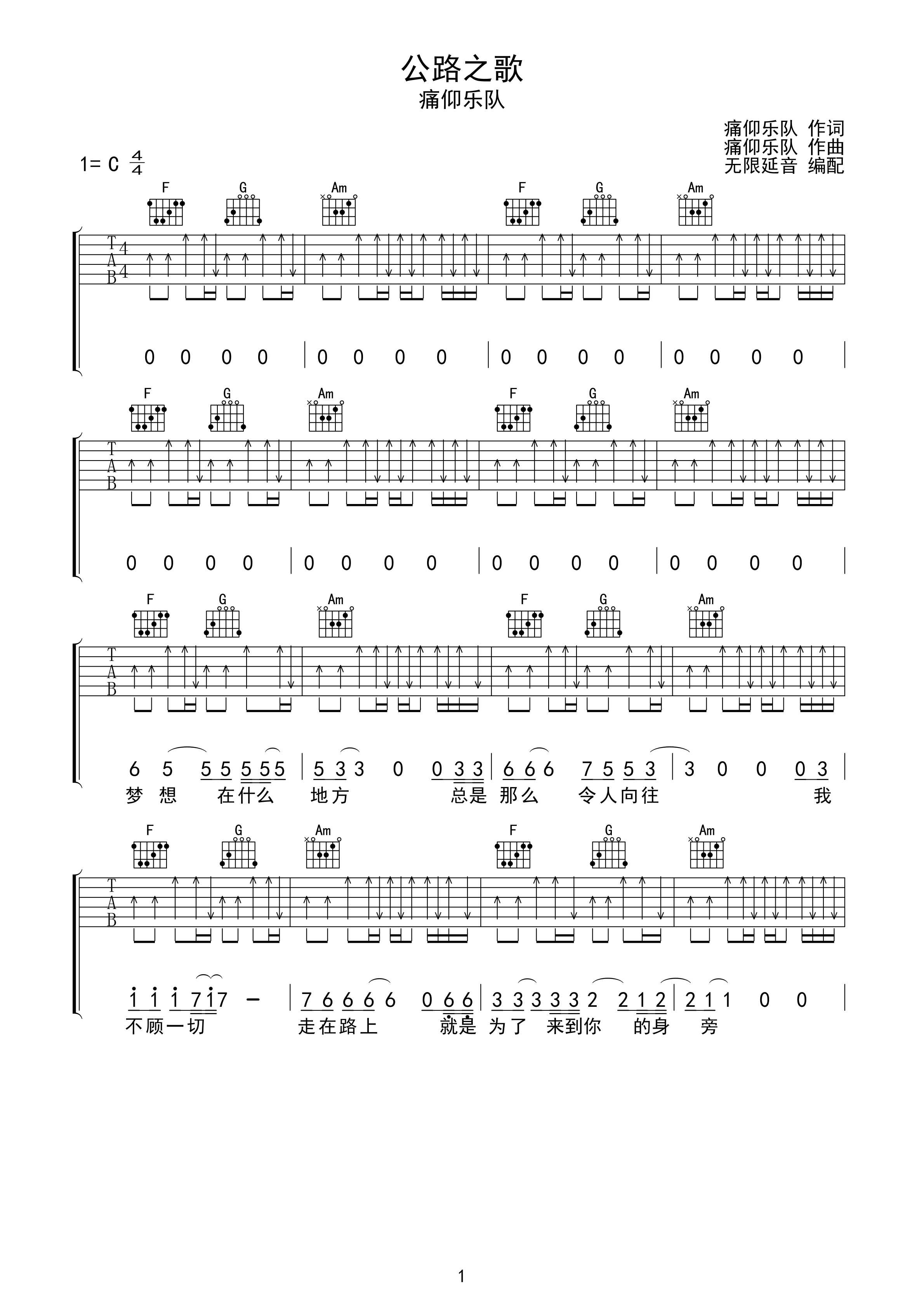 痛仰乐队公路之歌吉他谱