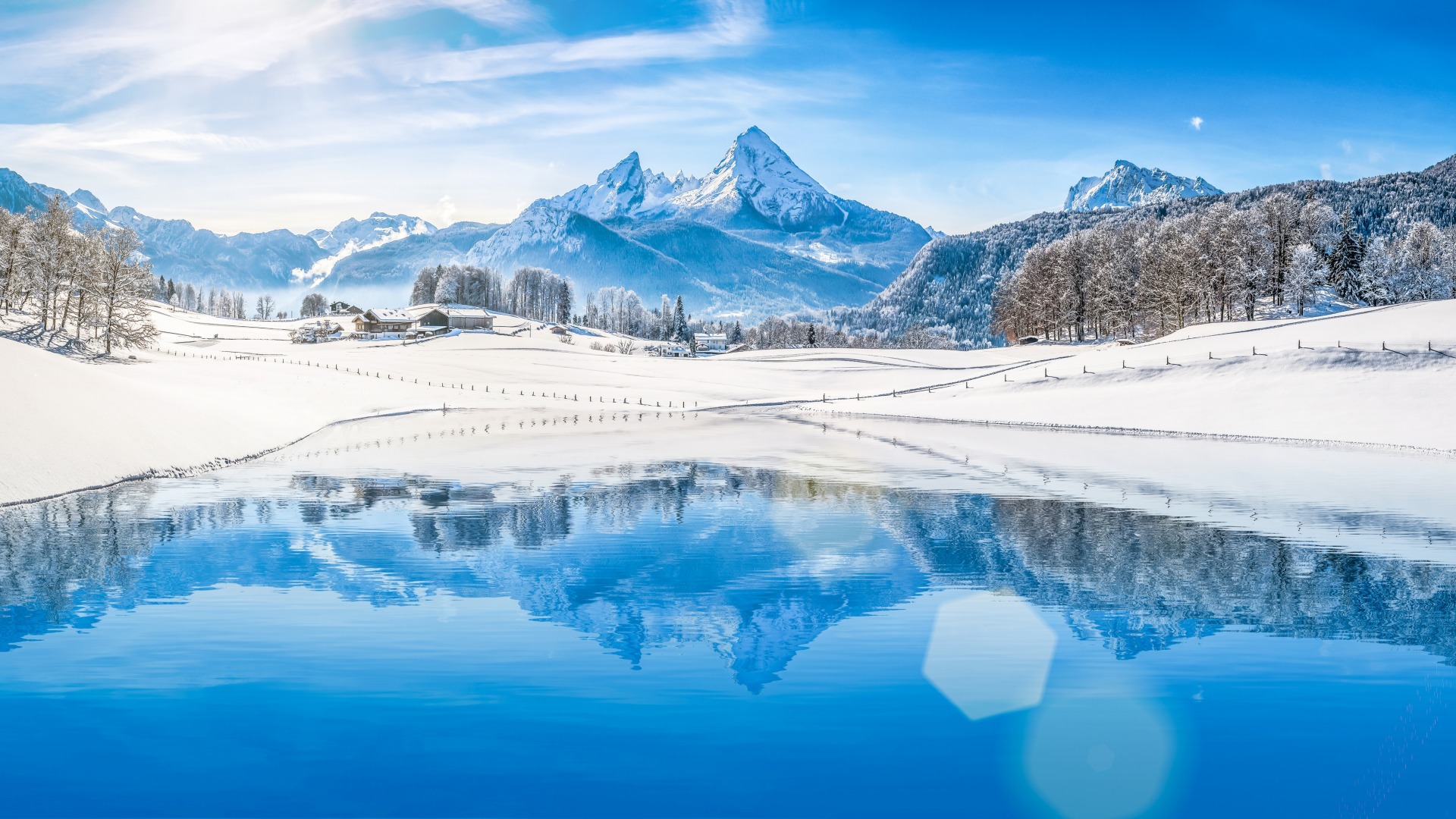 山峰,雪地,雪山,积雪,房子,树木,安静,唯美山峰壁纸图片