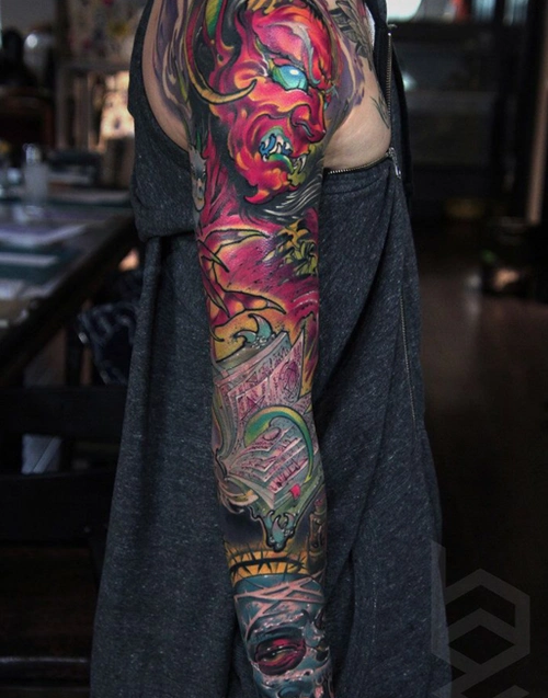 男生撒旦主题花臂欣赏好看的男生花臂2