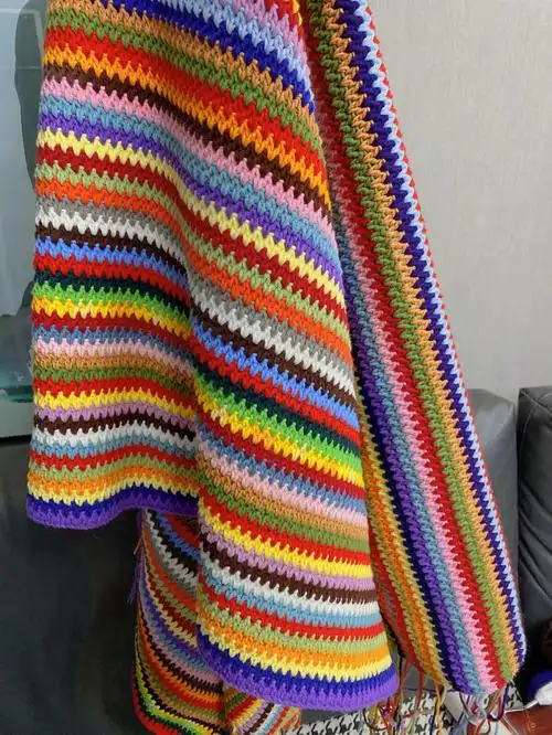 90宁の00分享 ins 拼色99毯子【附图解】