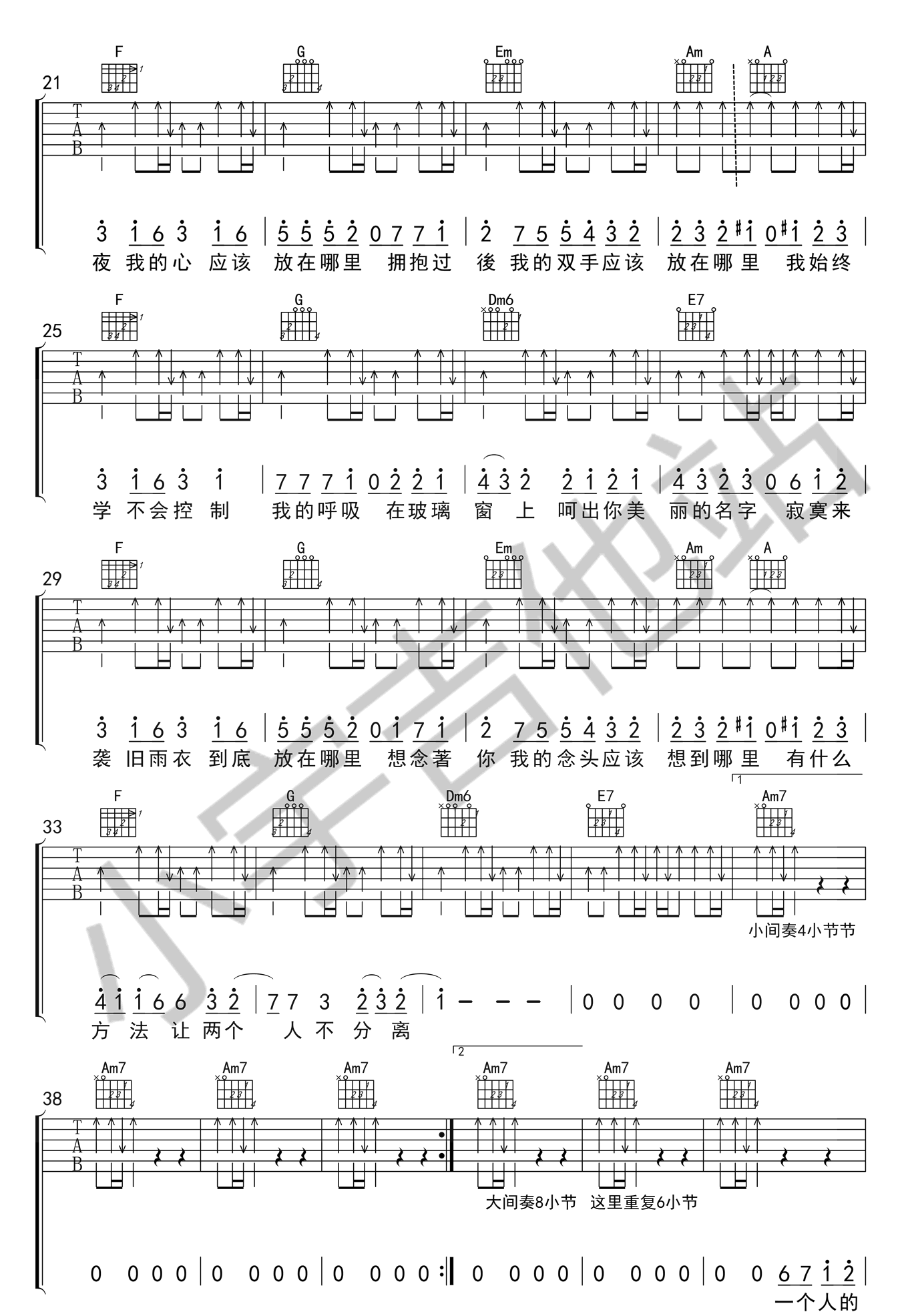 林宥嘉《突然想起你》吉他谱-c调精编原版六线谱