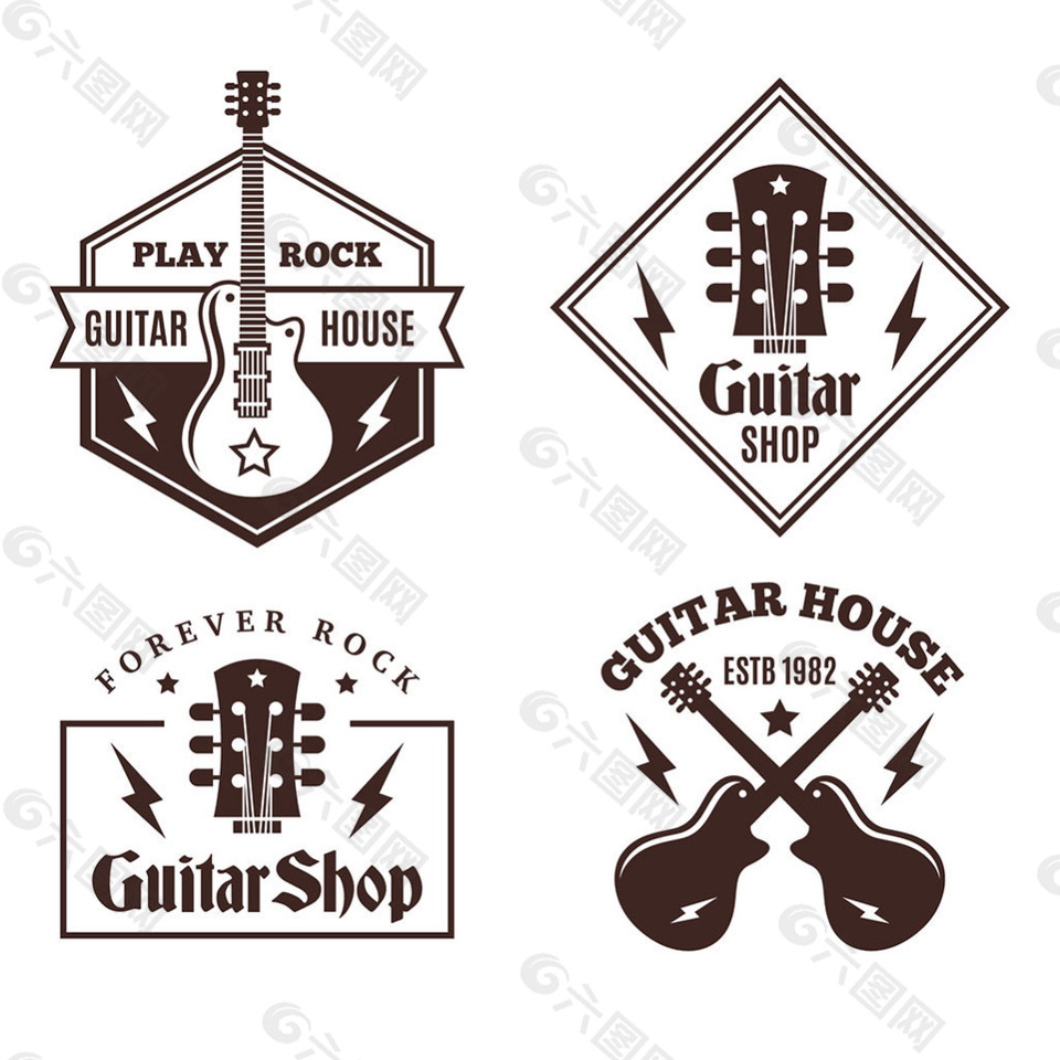 各种吉他标志平面设计素材