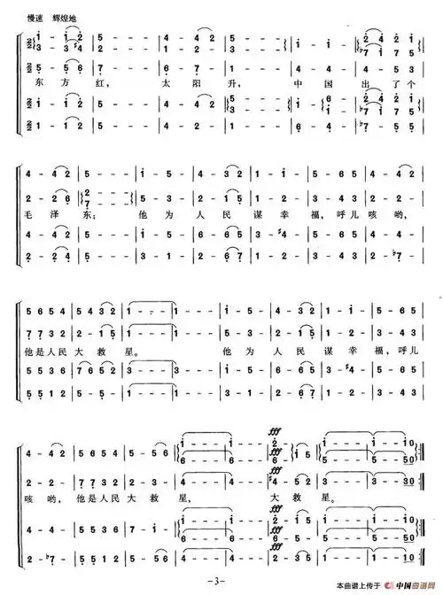 东方红简谱 合唱曲谱