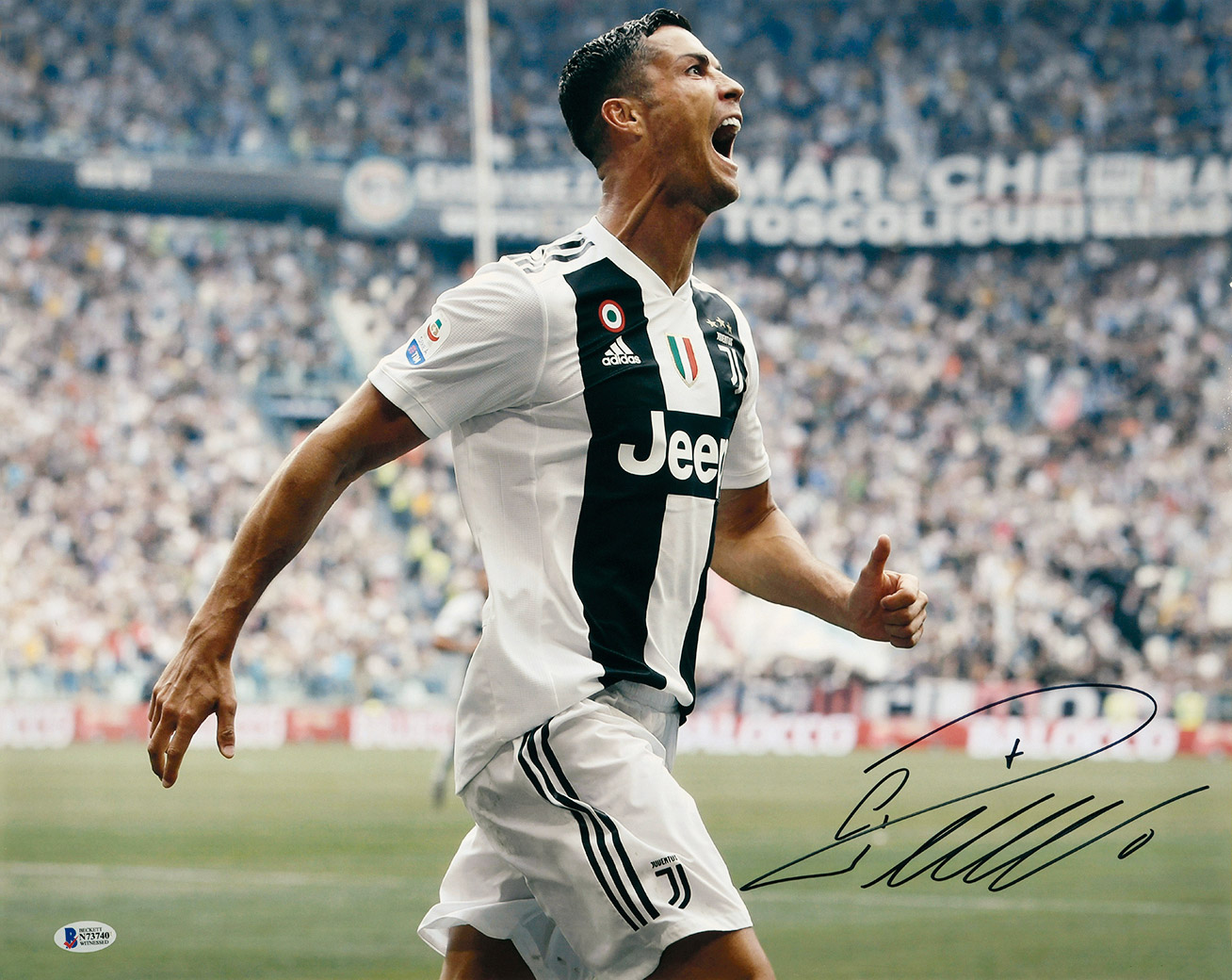收藏罗纳尔多cr7亲笔签名照片裱框sa证书尤文图斯文化