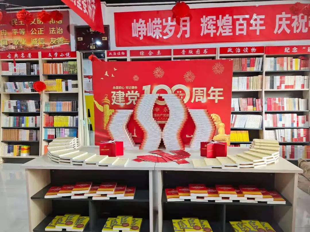 运城图书大厦在店内各个醒目位置用图书做了各种造型,还推出了党员