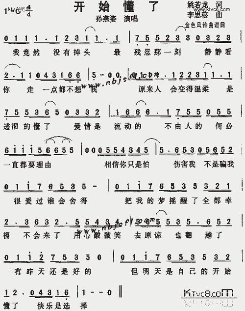 开始懂了 歌谱 简谱