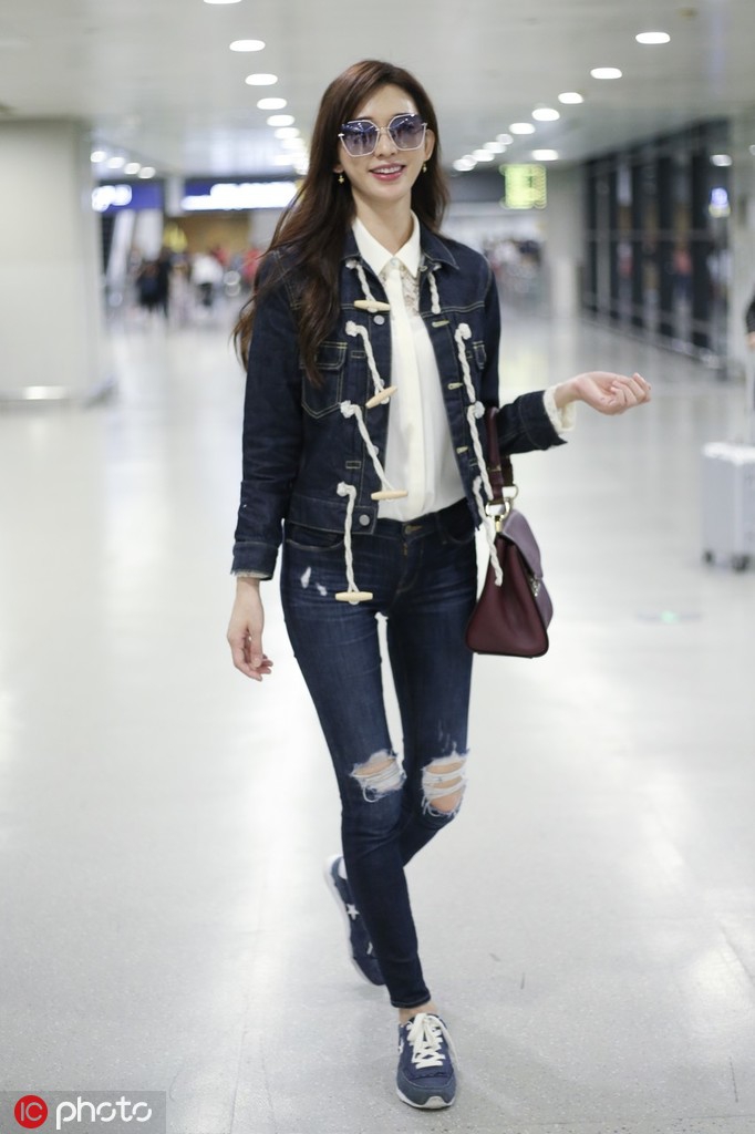 全屏观看 1 / 4 6月9日林志玲现身上海机场,白色外套搭配破洞牛仔裤