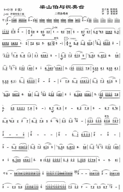梁祝(一) - 二胡谱 - 歌谱简谱大全