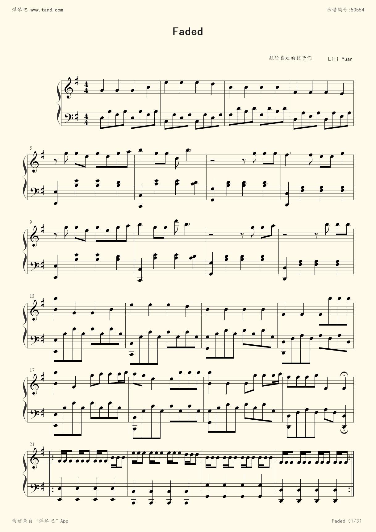 faded钢琴谱.faded五线谱.faded简谱(全套谱) - 抖音