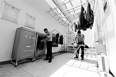 在基层连队,晾衣场经常"上锁",定时开关才能晾衣,取衣.