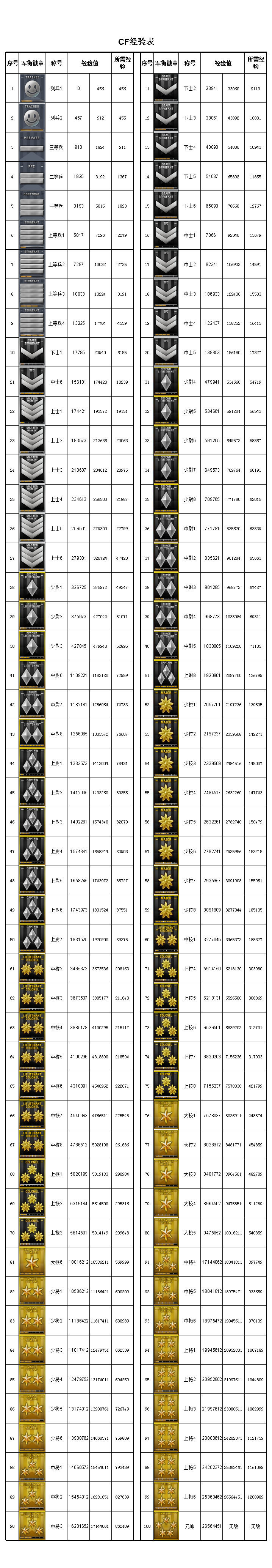 cf穿越火线军衔大图标等级经验对照表-最新.xls
