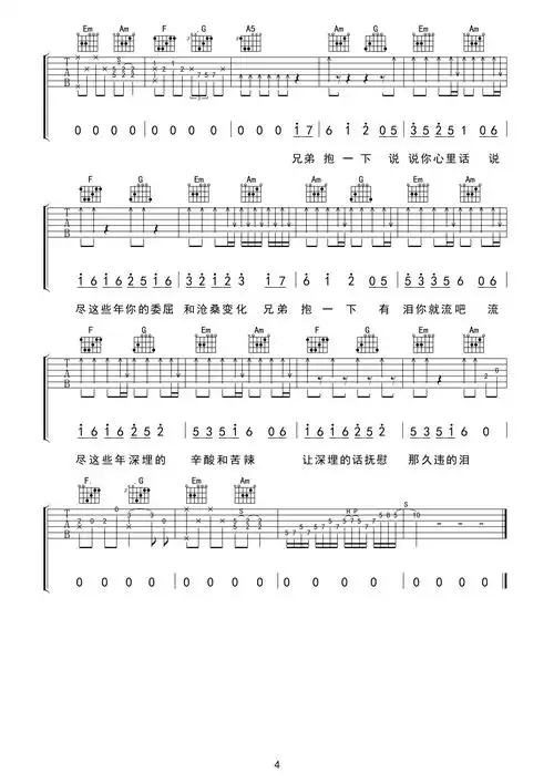 兄弟抱一下吉他谱