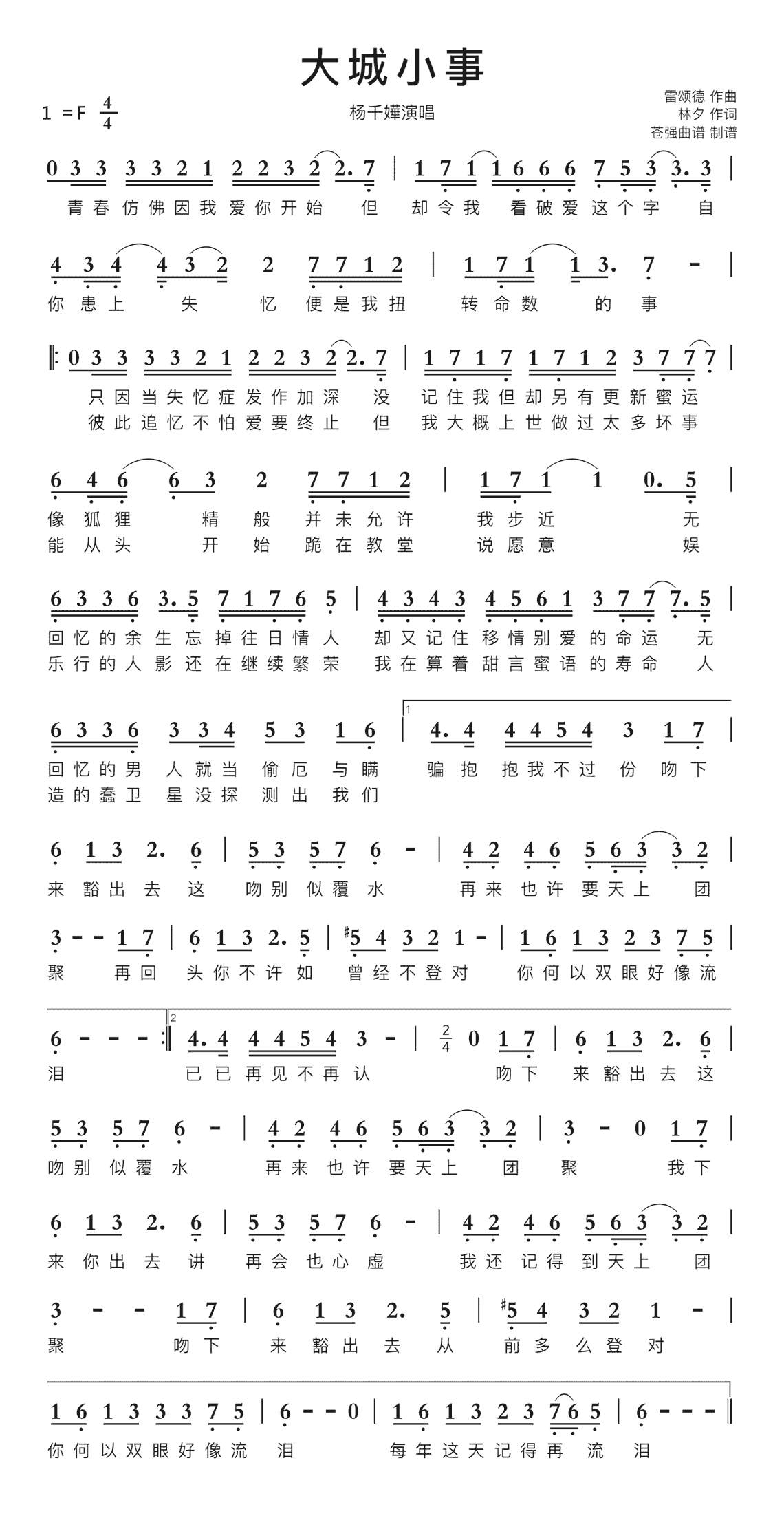 小城大事简谱(歌词)-杨千嬅演唱-岭南印象曲谱1