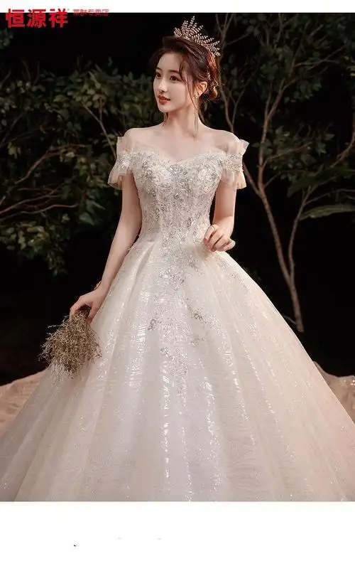 恒源祥出租婚纱礼服2020年春季新款其他肩新娘星空气质大拖尾超仙梦幻