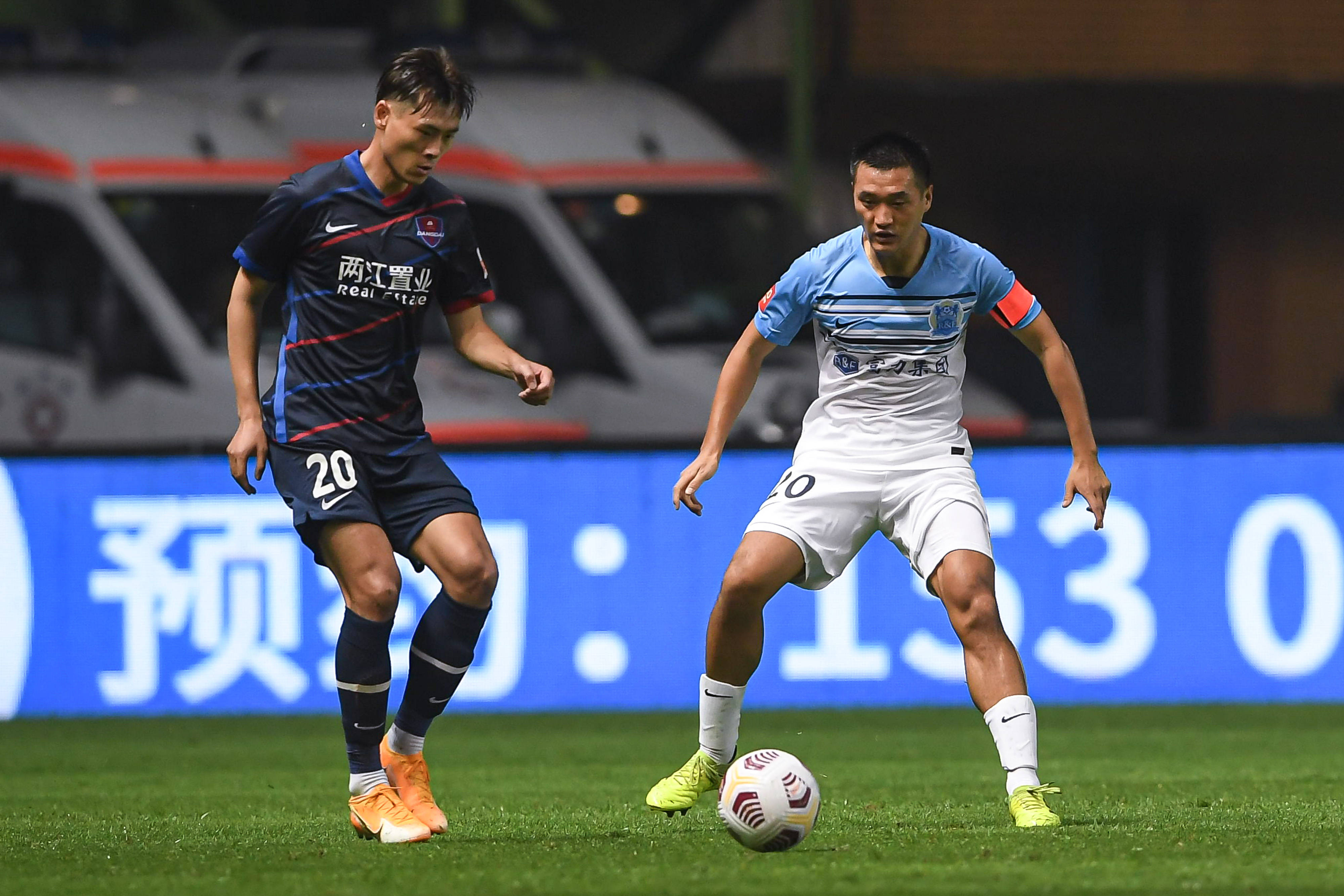 4月26日,广州城队球员黄政宇在比赛中带球.