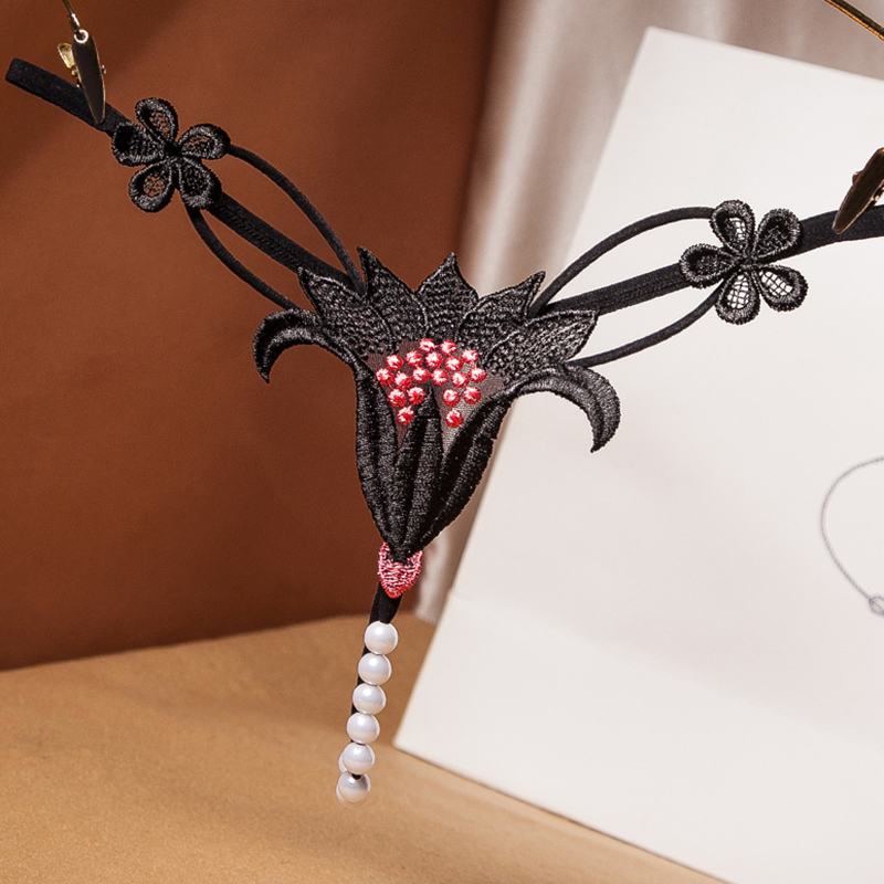 5恶势少女 黑色性感情趣蕾丝内裤交叉绑带开裆蜜桃女夏丁字三角裤已售