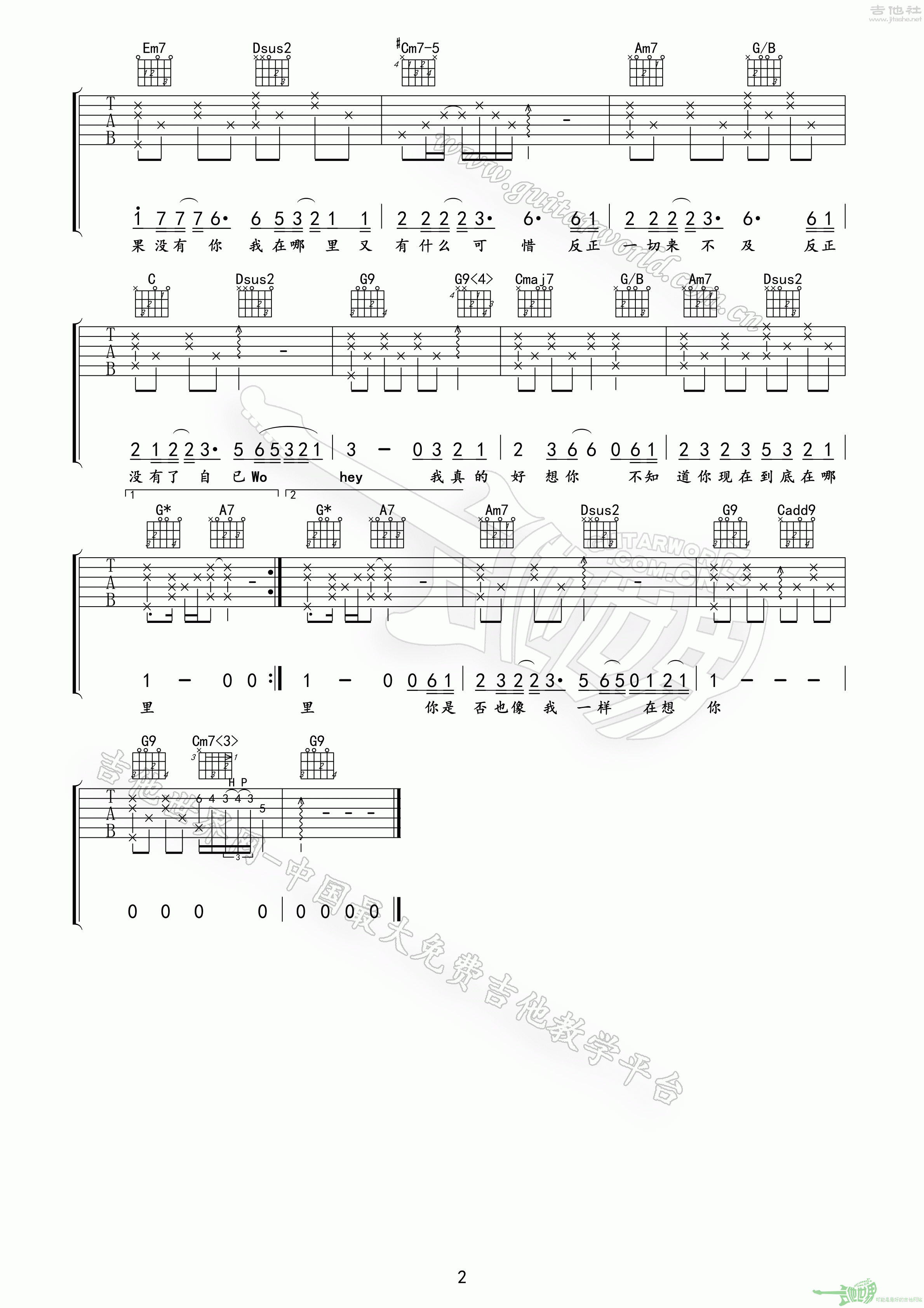 如果没有你吉他谱(图片谱,弹唱)_李代沫_如果没有你02.gif