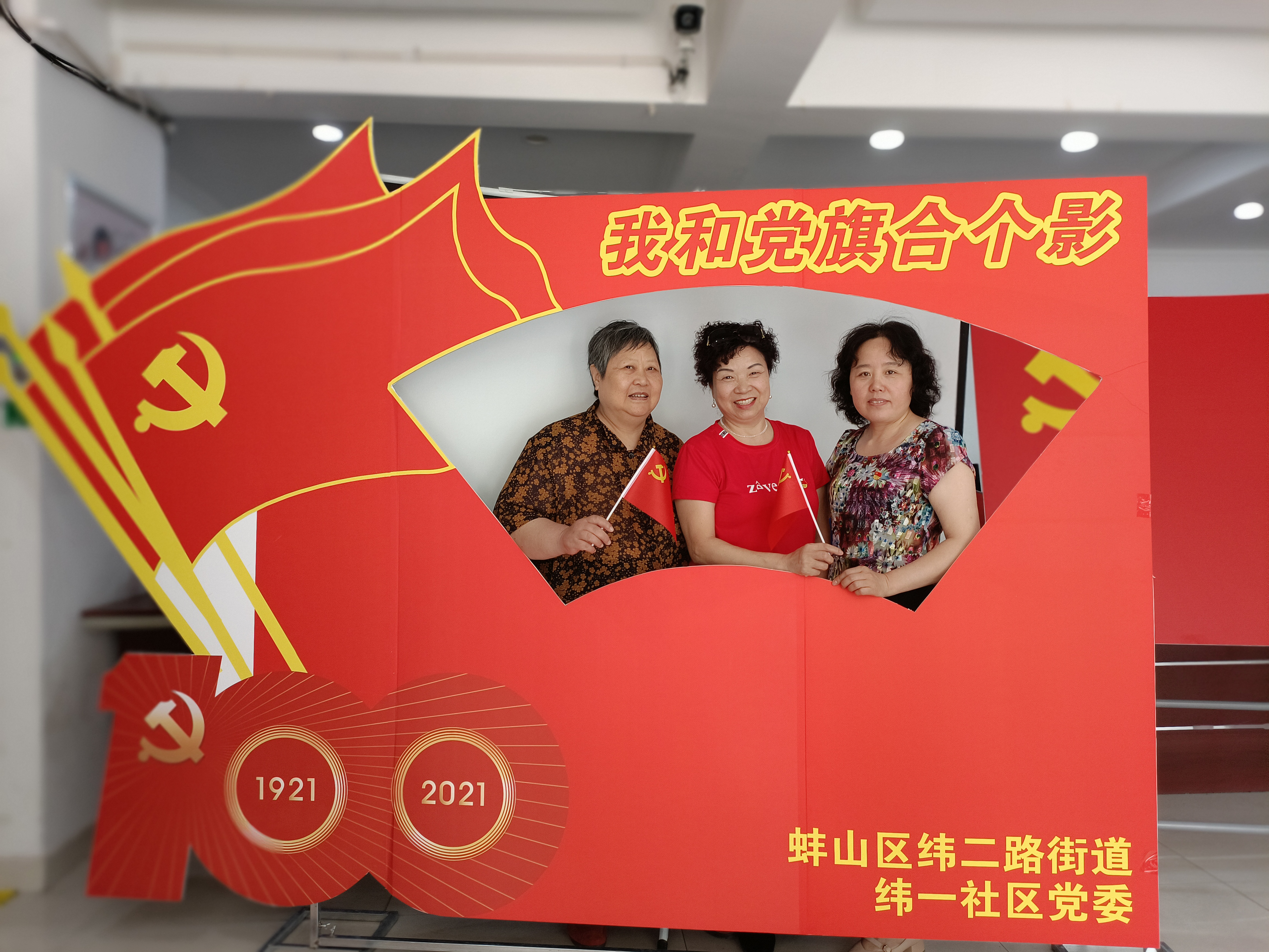 蚌山区纬二路街道:我与党旗合张影 献礼建党100周年