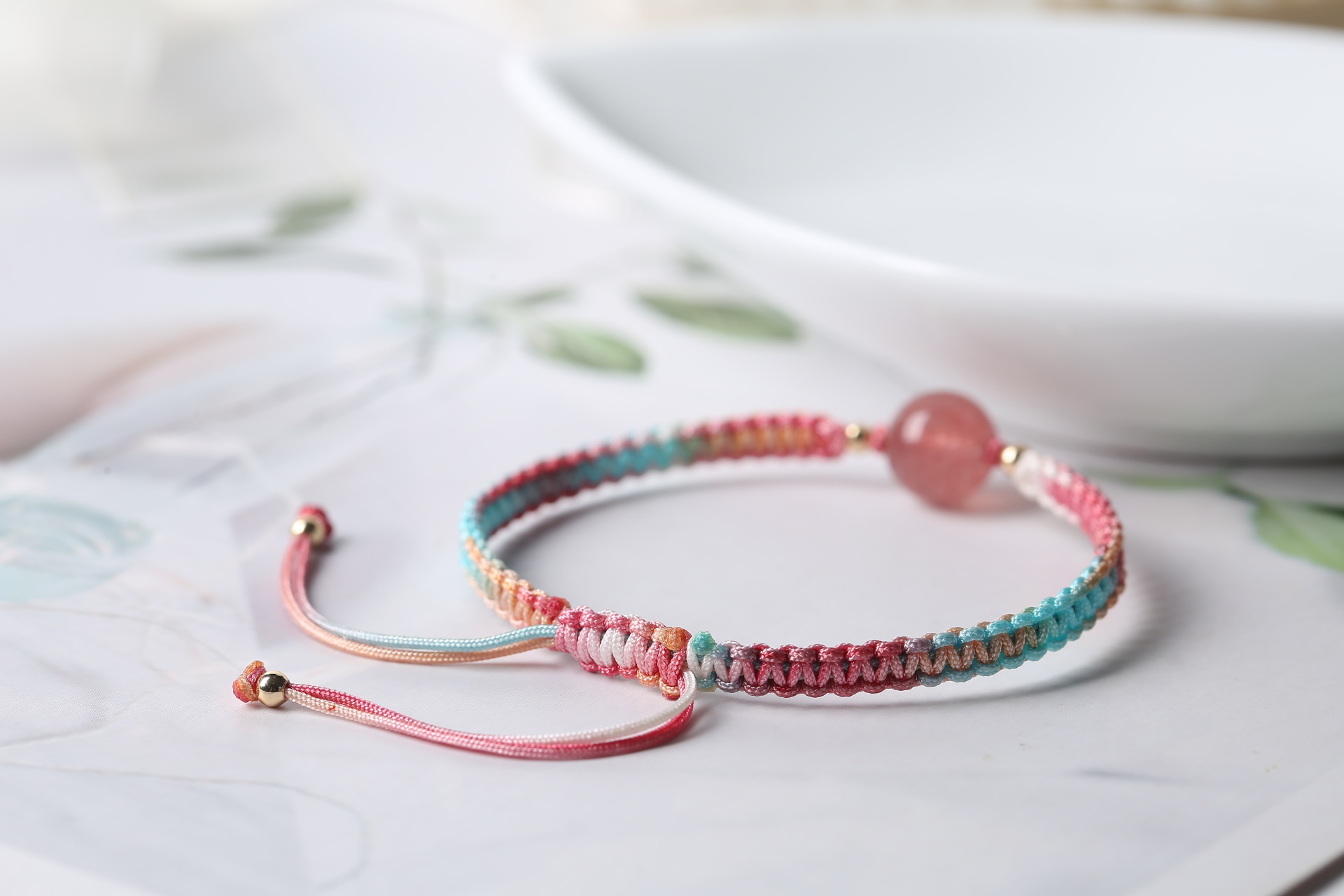 编绳打卡15本命色草莓晶蝴蝶结手链