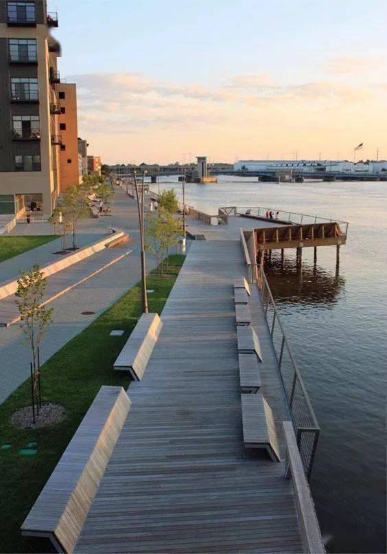 驳岸绿化设计又丰富了品种,改为大面积种植,与场地尺度契合